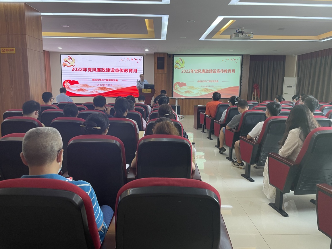 為扎實開展黨風(fēng)廉政建設(shè)宣教月活動,深入推進清廉學(xué)院建設(shè),9月15日下午,信息學(xué)院黨委在學(xué)院401學(xué)術(shù)報告廳召開黨風(fēng)廉政建設(shè)宣傳教育月警示教育大會,學(xué)院領(lǐng)導(dǎo)班子成員、各系部主任、支部書記以及部分黨員代表參加會議,會議由學(xué)院黨委書記劉運顯主持。