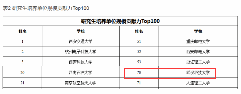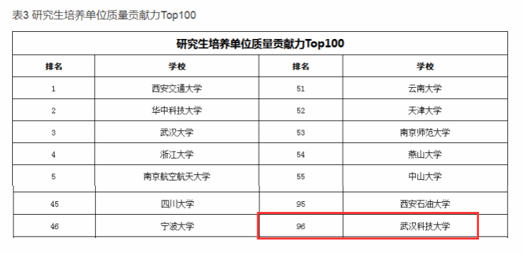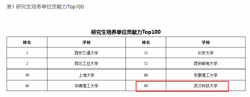 武科大網(wǎng)訊 (通訊員 吳廣良)近日,在中國學(xué)位與研究生教育學(xué)會隆重舉行的中國研究生創(chuàng)新實踐系列大賽十周年總結(jié)大會上,重磅公布了研究生培養(yǎng)單位貢獻力TOP100排行榜,我校榜上有名!