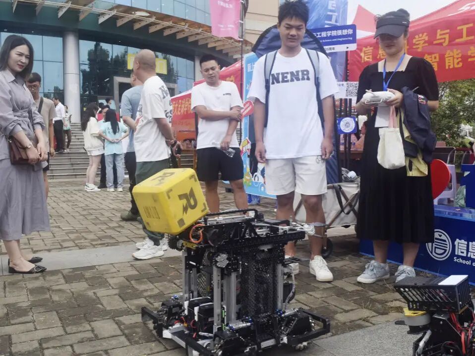 14日,崇實(shí)戰(zhàn)隊(duì)的隊(duì)員們攜帶兩臺(tái)智能小車以及一臺(tái)無人機(jī)來到了帳篷迎新點(diǎn),以其科技產(chǎn)品豐富的科技感、炫酷感吸引了眾多新生駐足觀看。復(fù)雜精妙的機(jī)械通過有序的設(shè)計(jì)與算法控制集合成功能外觀一流的小車吸引了新生們想要躍躍一試,崇實(shí)戰(zhàn)隊(duì)的隊(duì)員王翔躍便隨機(jī)邀請(qǐng)了集團(tuán)新生進(jìn)行實(shí)際操作,引導(dǎo)他們通過手中的遙控器指引小車進(jìn)行加速、推物、翻轉(zhuǎn)等動(dòng)作。獨(dú)特的造型與特技的動(dòng)作也引得家長(zhǎng)們舉起手機(jī)紛紛錄制視頻。