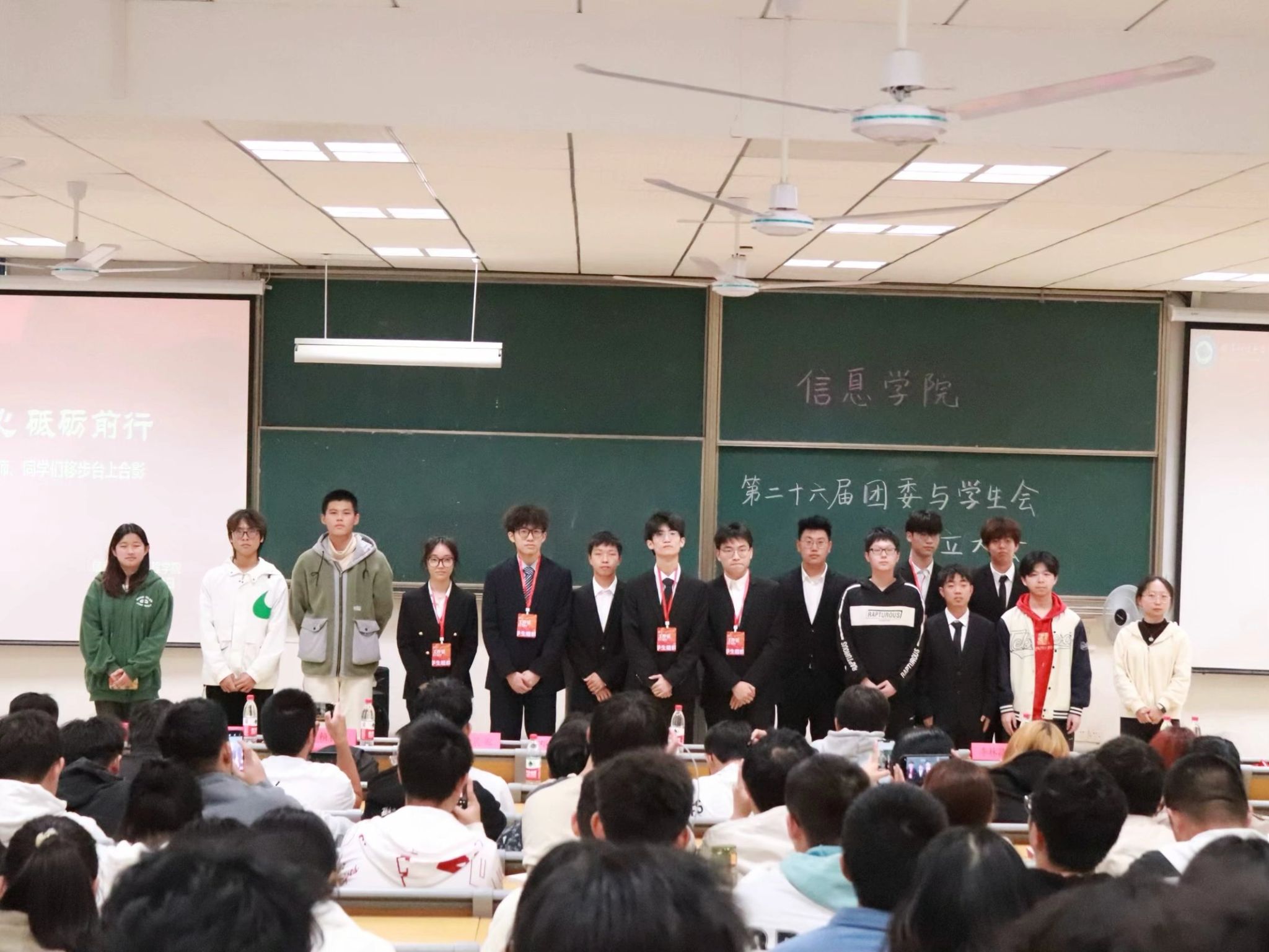 武科大網(wǎng)訊(通訊員李紫悅 朱睿琪 王圣博)11月10日,信息科學(xué)與工程學(xué)院第二十六屆團(tuán)委與學(xué)生會(huì)成立大會(huì)在黃家湖校區(qū)主樓13210教室召開(kāi)。參加大會(huì)的有學(xué)院團(tuán)委書(shū)記季晨昊、2022級(jí)輔導(dǎo)員潘鑫、2023級(jí)輔導(dǎo)員鄧?yán)钚酪约皥F(tuán)委與學(xué)生會(huì)全體成員和其他學(xué)院團(tuán)委與學(xué)生會(huì)代表。會(huì)議由2023級(jí)學(xué)生湯臻宏主持。