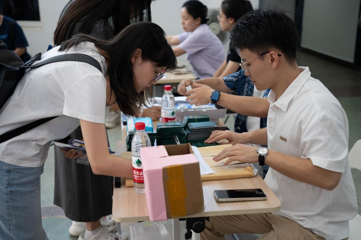 為給新生提供便捷的報到體驗,學(xué)院特別設(shè)置了“一站式服務(wù)點”,在這里,新生有序完成個人材料提交、新生照片采集、宿舍鑰匙領(lǐng)取、一卡通和研究生證領(lǐng)取等報到環(huán)節(jié)。在領(lǐng)導(dǎo)的關(guān)懷與鼓勵下,學(xué)院迎新工作人員和志愿者們更加精神抖擻,以飽滿的熱情迎接每一位新生的到來。