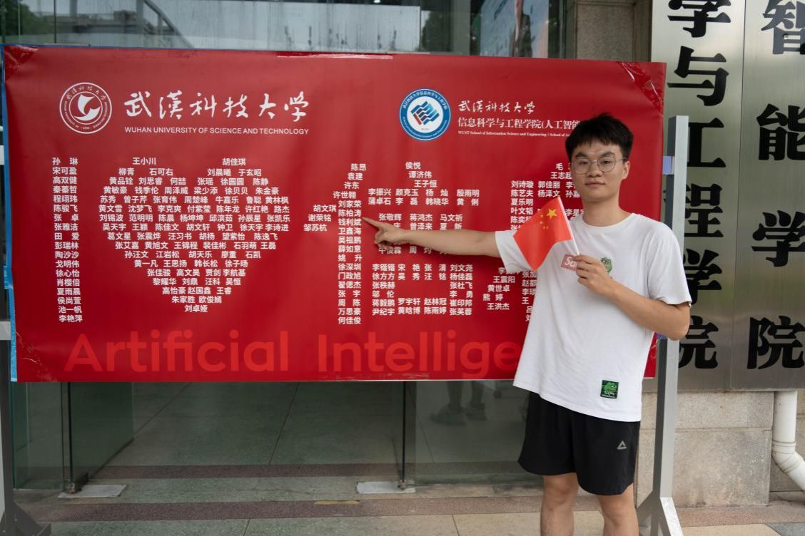 圖5:新生在學(xué)院門口字云圖海報前打卡 李軻攝