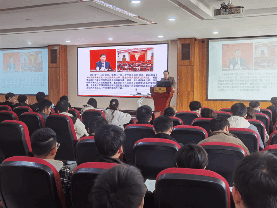 蔡彬從“深刻認(rèn)識黨的二十屆三中全會的主題和意義”,“深刻認(rèn)識進(jìn)一步全面深化改革的指導(dǎo)思想、總目標(biāo)和重大原則”,“全面準(zhǔn)確理解《決定》提出的進(jìn)一步全面深化改革重大舉措”,“嚴(yán)格落實黨中央關(guān)于貫徹落實全會精神的基本要求、奮力推進(jìn)中國式現(xiàn)代化的湖北實踐”四個方面做了深入講解。