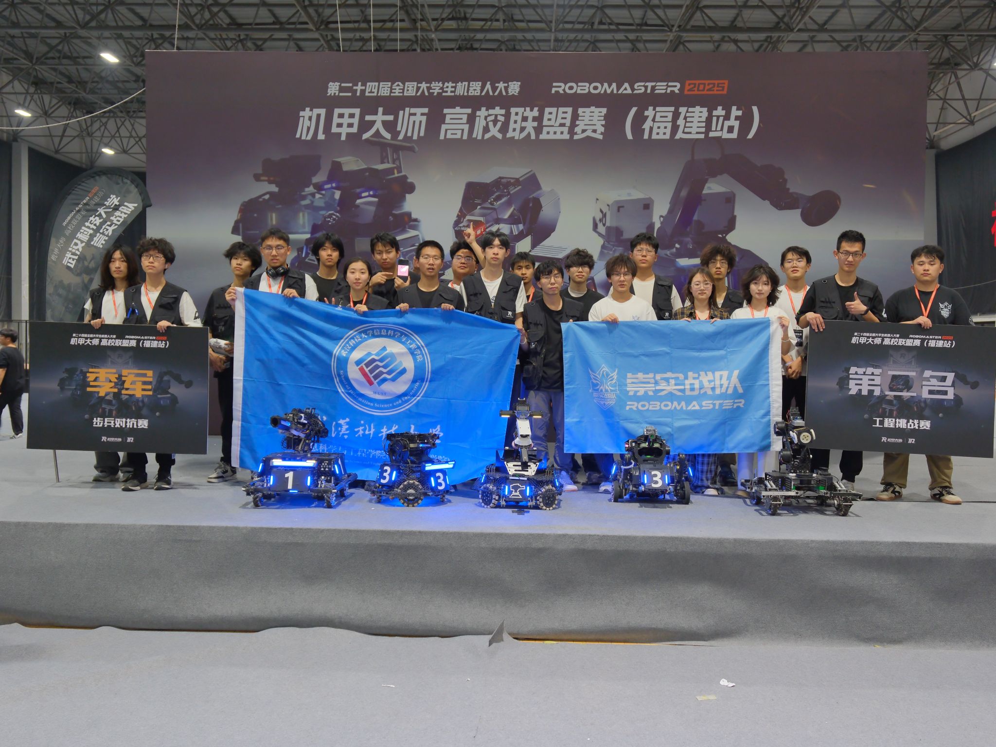 3月21至23日,RoBoMaster機(jī)甲大師高校聯(lián)盟賽2025(RMUL, RoboMaster University League)在福建理工大學(xué)籃球場(chǎng)館內(nèi)上演。來(lái)自各地的34支戰(zhàn)隊(duì)齊聚福建,共同角逐。在指導(dǎo)老師程磊的帶領(lǐng)下,我校崇實(shí)戰(zhàn)隊(duì)在步兵對(duì)抗賽、工程挑戰(zhàn)賽斬獲一等獎(jiǎng),在3v3對(duì)抗賽中斬獲三等獎(jiǎng)。