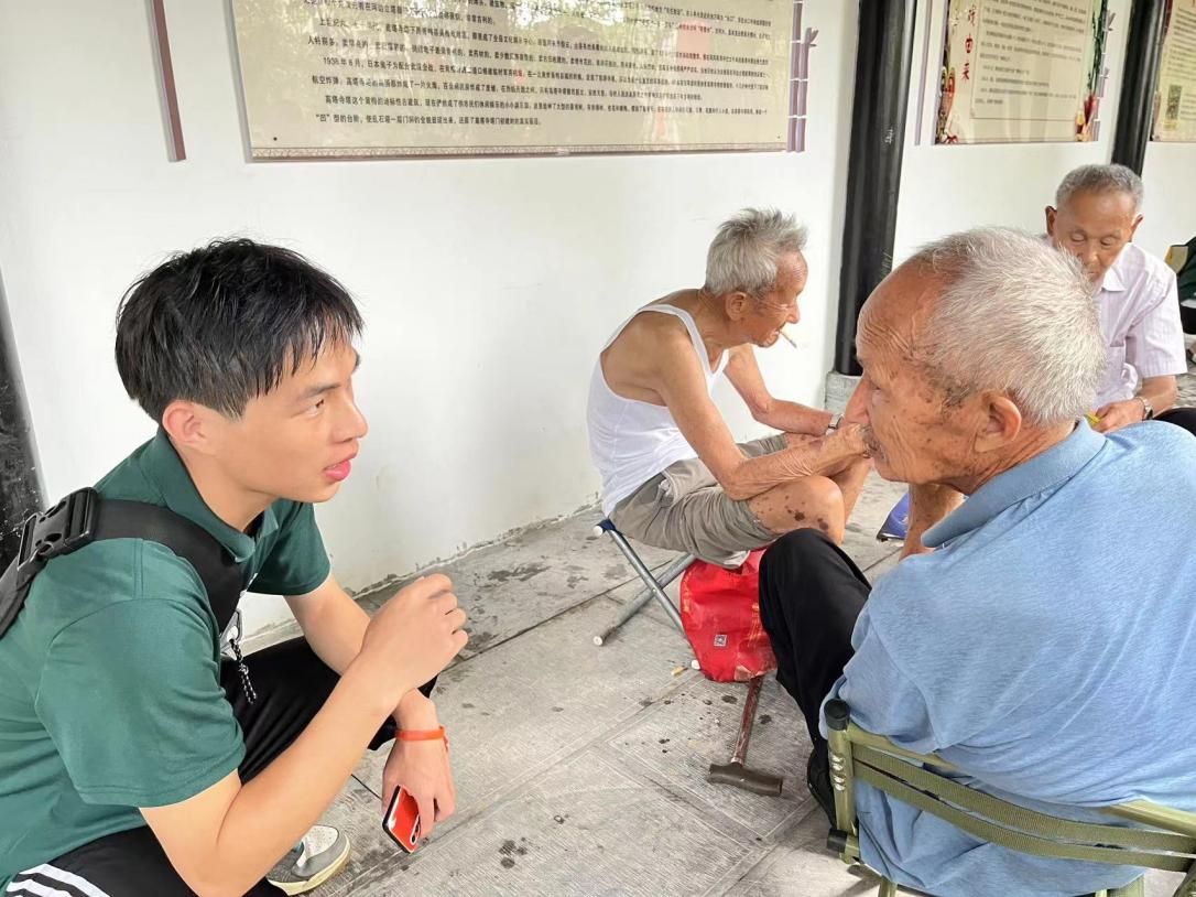 圖 實踐團(tuán)成員與老人在聊天