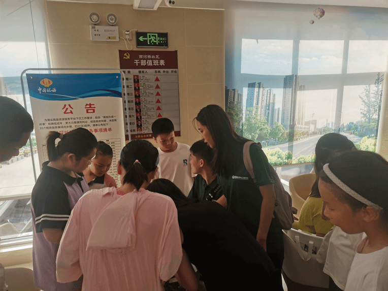 2023年7月10日,太陽(yáng)剛剛露出地平線,實(shí)踐團(tuán)的志愿者們便早早地來(lái)到了西河橋黨群服務(wù)中心,和提早來(lái)的同學(xué)們聊起了天。
