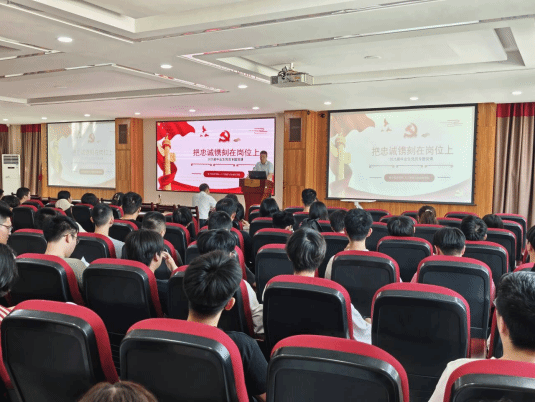 黨委副書記張彥良講述黨課《把忠誠鐫刻在崗位上》。張彥良深入闡述了忠誠于黨的事業(yè)的重要性,結合實際案例,教導畢業(yè)生黨員們無論身處何種崗位,都要時刻牢記黨員身份,以對黨忠誠為指引,發(fā)揮先鋒模范作用,為實現(xiàn)中華民族偉大復興貢獻力量。