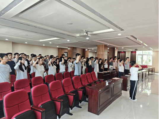 活動在激昂的國歌聲中拉開序幕,全體參會人員莊嚴肅立,齊聲高唱國歌。隨后,在電子信息學院十大魅力學子、優(yōu)秀黨員馮思淇的帶領下,畢業(yè)生黨員們面向黨旗,重溫入黨誓詞。