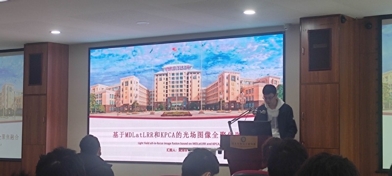 圖2.黃澤豐做“基于MDLatLRR和KPCA的光場圖像全聚焦融合”的報(bào)告